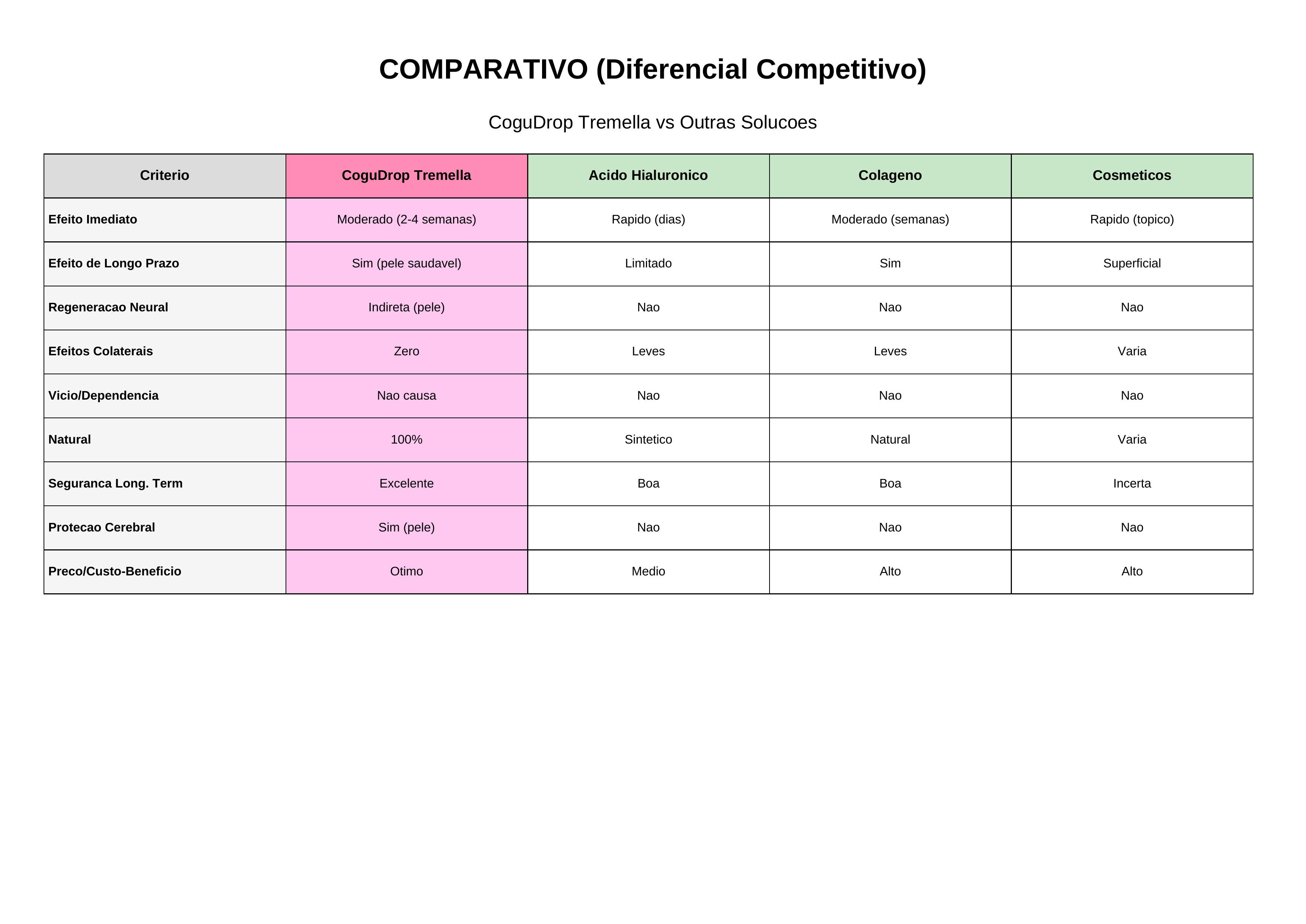 É o único extrato natural de cogumelo com comprovação científica para hidratação profunda da pele. Enquanto outros produtos apenas hidratam temporariamente, o CoguDrop Tremella hidrata e regenera sua pele de dentro para fora.